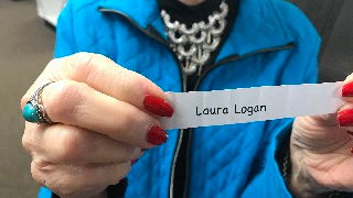 Laura is contemplating what to purchase with her certificate, but is partial to the Dana Buchman sunglasses in stock at Heartland Eyecare.